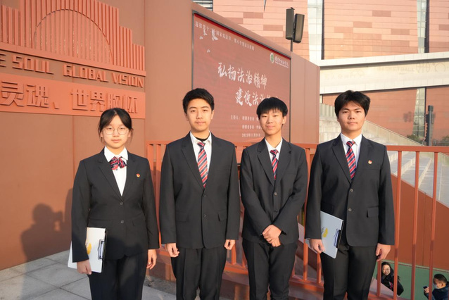 两个月前,我代表学校参加南京市“学宪法、讲宪法”演讲比赛并获一等奖。这让我理解了宪法对于我们的无比重要。2024年全国九年义务教育巩固率达95.9%,比五年前提高2.3个百分点——这个跳动的数字背后,藏着无数个学龄儿童的故事:“两免一补”让云南学生不用背着满篓菌子走山路换学费,“特岗教师计划”让西藏卓玛在村里的课堂听见标准英语发音。这些孩子们“能安心读书”的踏实,根都扎在宪法第四十六条“公民有受教育的权利和义务”里。而这份“法治温度”,同样在咱们南外校园里生长。不迟到早退,是对“规则权威性”的敬畏;帮同学们熟悉选课系统,是对“平等权利”的守护;发现规则漏洞主动提议,是“参与法治建设”的萌芽。这样的法治思维,在南外校园中,每时每刻都浸润着我们的心怀。