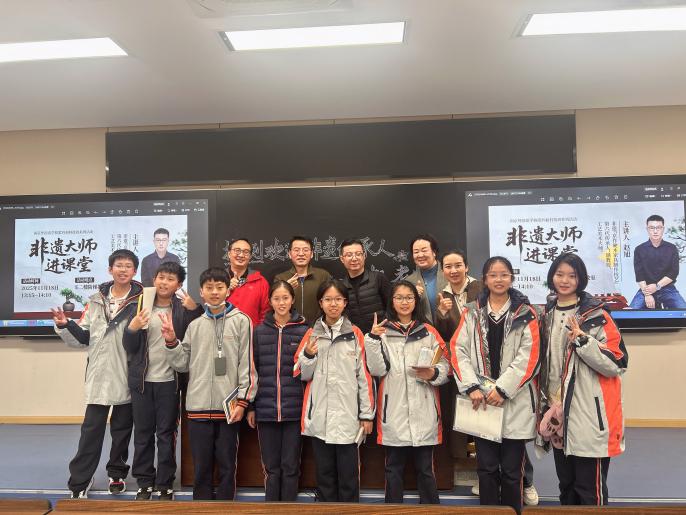 整场讲座不仅是一场知识的盛宴,更是一次艺术与科技融合的实践课堂。它呼应了美术课程中提升审美素养、增强文化理解的核心目标,也让同学们看到传统手工艺背后严谨的技术逻辑与创新精神。讲座在同学们与非遗大师的合影中圆满落幕。