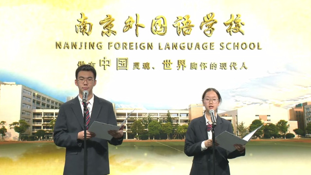 尊敬的老师们,亲爱的同学们,大家早上好!我是高一(7)班郑雅岚。我是高二(5)班杨瀚理。