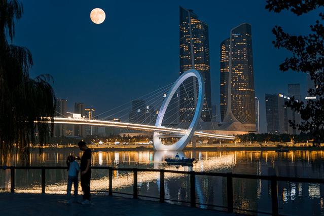 这桥的红,是国庆的喜;这月的圆,是中秋的暖。让我们以桥为尺,以节为规,把每一家的小团圆,拼成中华民族伟大复兴的大团圆,拼成世界人民互帮互助的大安心!谢谢大家!