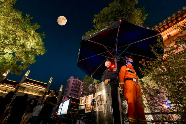 卞:当然有!我看到夜幕下的圆月照亮古老街巷,静谧深邃;南京眼与周边环境交相辉映,生机勃勃。悠久文化传承与现代文明发展相得益彰,震撼人心。我还记录了假日里坚守岗位的保安和消防员,他们恪尽职守保卫万家团圆,无数奋斗者用辛勤劳动让“国圆”有了最坚实的模样,那副美景令人难忘,我特别想把它传递给更多人。