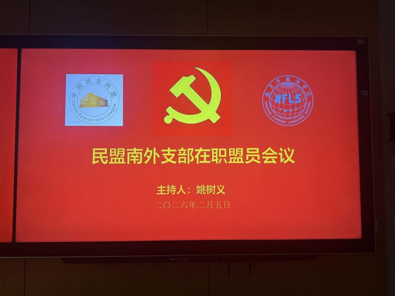2026年2月5日,民盟南京外国语学校支部召开了2025年度工作总结暨2026年度工作计划会议。支部全体盟员齐聚一堂,回顾过去一年的履职风采,共谋新一年的发展蓝图。