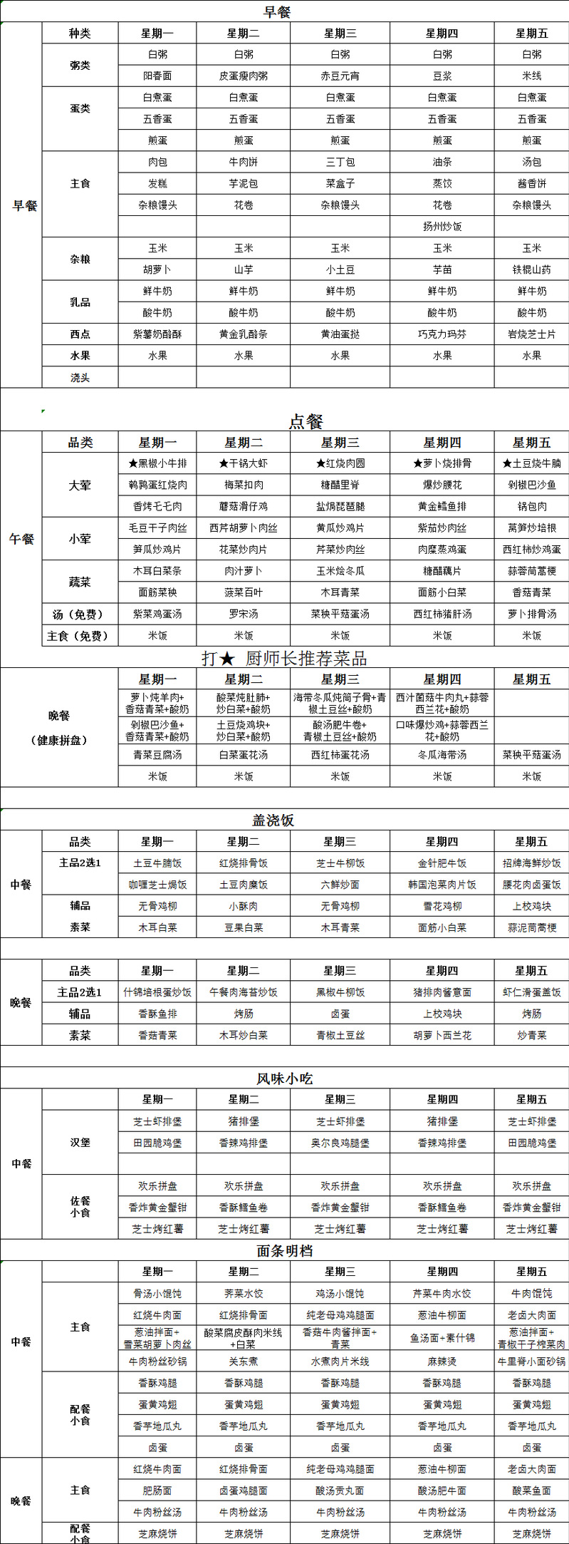 南校区2026年3月9日-3月13日菜单