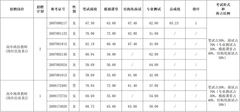 南京外国语学校2026年1月公开招聘教师面试成绩公布